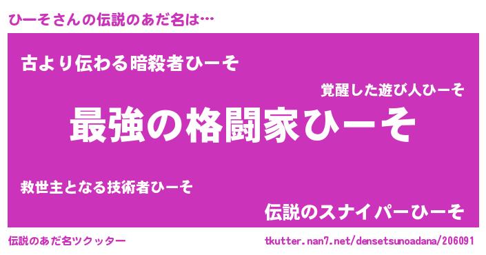 | ヒーロー風カッコイイあだ名 | 『ウルトラひーそマン』『ネオヒーソ』 |