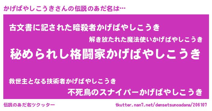 | 意味不明あだ名 | 『かげばやしこうきフォーエバー』 |