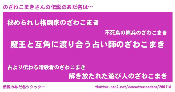 | ヒーロー風カッコイイあだ名 | 『愛の使者のざわこまき』『魔戒騎士ノザ』 |