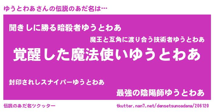 | 意味不明あだ名 | 『とにかく怪しいゆうとわあ』 |