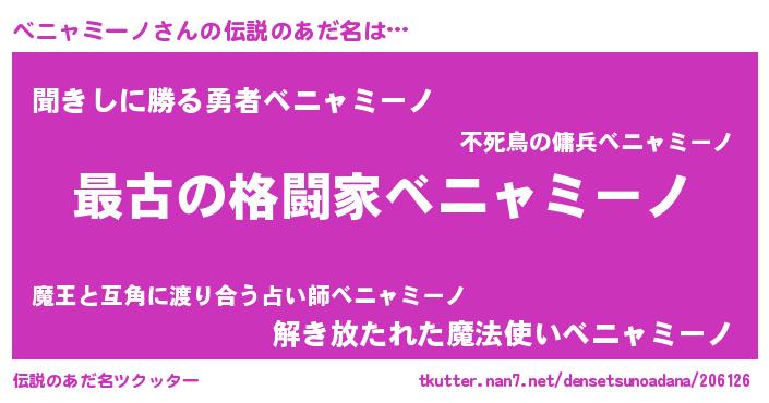 | ファンタジー風あだ名 | 『エターナルベニャミーノー』 |