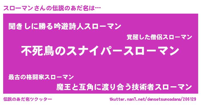 | 意味不明あだ名 | 『自称スローマン』『ペロリンスローマン』 |