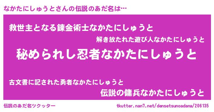 | 意味不明あだ名 | 『住所不定無職なかたにしゅうと(14歳)』 |