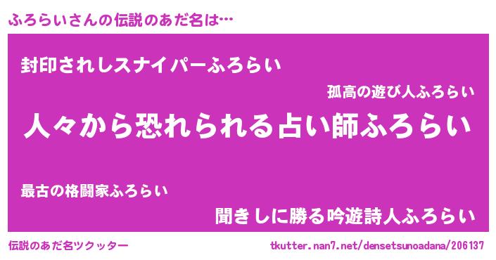 | ヘコむあだ名 | 『ふろもー』『ふろらい(遠い目)』 |