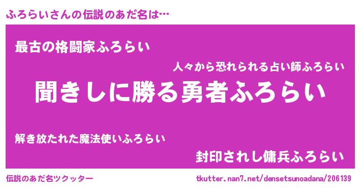 | 意味不明あだ名 | 『永久保存ふろらい』『自称ふろらい』 |