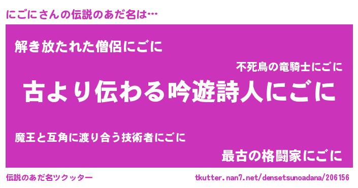 | ヒーロー風カッコイイあだ名 | 『ネオニゴニ』『暗黒騎士ニゴ』 |