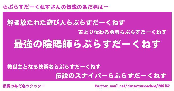 | 欧米人風あだ名 | 『らぷらすだーくねすクリステル』 |