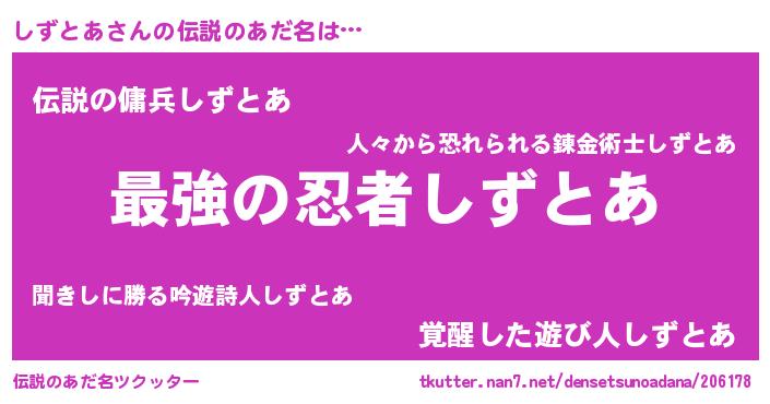 | 意味不明あだ名 | 『しずとあフォーエバー』『自称しずとあ』 |