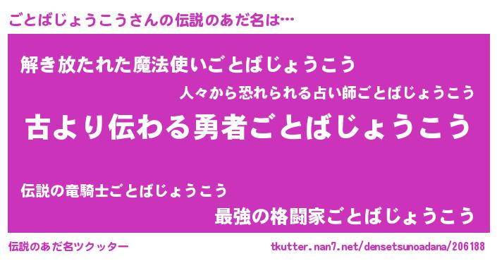 | 意味不明あだ名 | 『永久保存ごとばじょうこう』 |