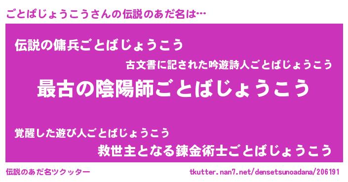 | 男性向けラノベタイトル風あだ名 | 『転生したらごとばじょうこうだった件』 |