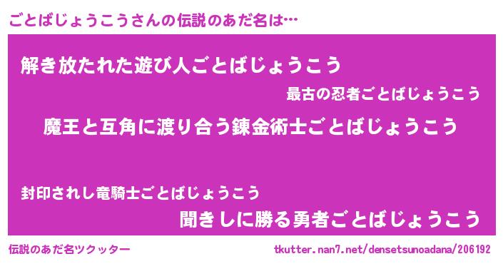 | ヘコむあだ名 | 『ごとぷりん』『ごとばじょうこう(笑)』 |