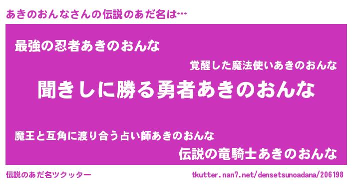 | 男性向けラノベタイトル風あだ名 | 『あきのおんなという概念が存在しない退屈な世界 』 |
