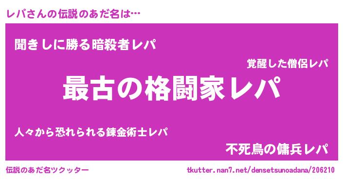 | ヒーロー風カッコイイあだ名 | 『サイバー戦士レパ』『ウルトラレパマン』 |