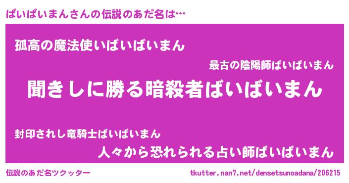 | 男性向けラノベタイトル風あだ名 | 『ばいばいまんという概念が存在しない退屈な世界 』 |