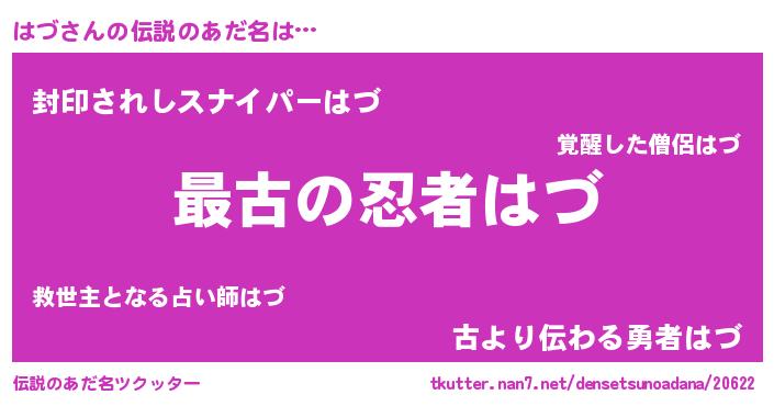 | 意味不明あだ名 | 『住所不定無職はづ(41歳)』『自称はづ』 |