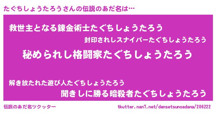 | 料理風あだ名 | 『たぐちしょうたろうごはん』 |