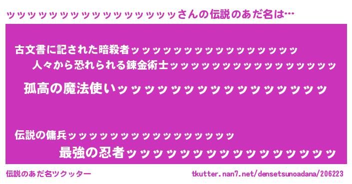 | 胡散臭い通販商品みたいなあだ名 | 『信頼と実績のサプリメント…その名も「ッッッッッッッッッッッッッッッッ」』 |