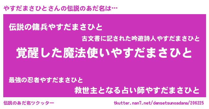 | 意味不明あだ名 | 『とにかく怪しいやすだまさひと』 |