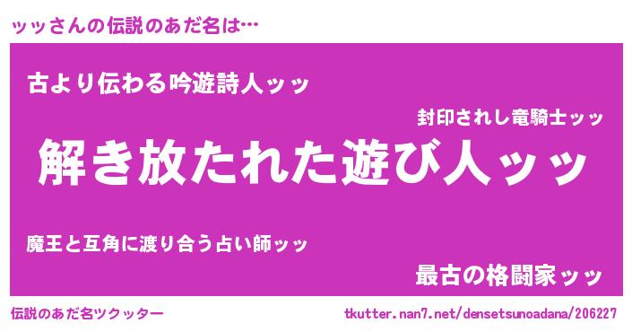 | 意味不明あだ名 | 『とにかく怪しいッッ』『永久保存ッッ』 |