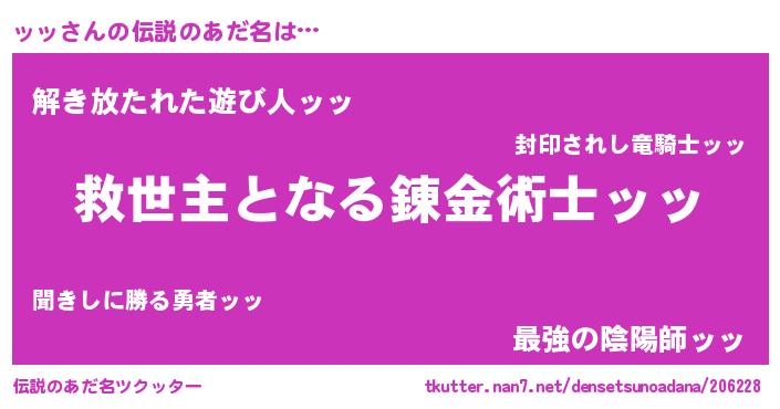 | ヒーロー風カッコイイあだ名 | 『天空の使者ッッ』『仮面ッッダー』 |