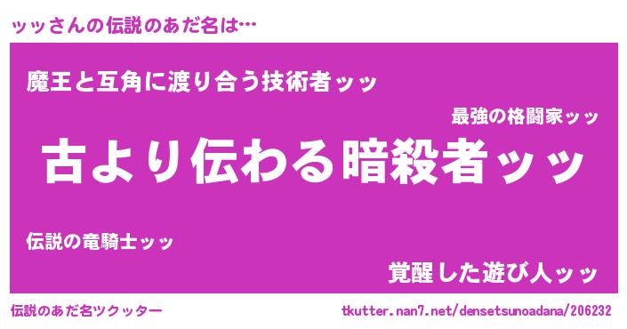 | 胡散臭い通販商品みたいなあだ名 | 『来世でも幸せになれる健康食品…その名も「ッッ」』 |