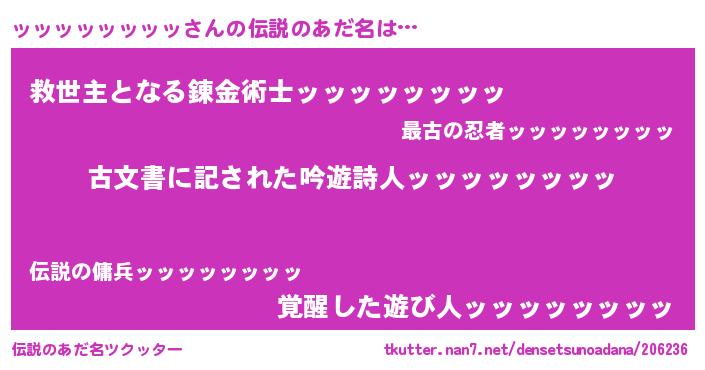 | 胡散臭い通販商品みたいなあだ名 | 『あなたにだけ特別に提供する100年もののヴィンテージワイン…その名も「ッッッッッッッッ」』 |
