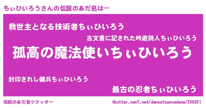 | ヒーロー風カッコイイあだ名 | 『暗黒騎士チィ』『ネオチィヒイロウ』 |