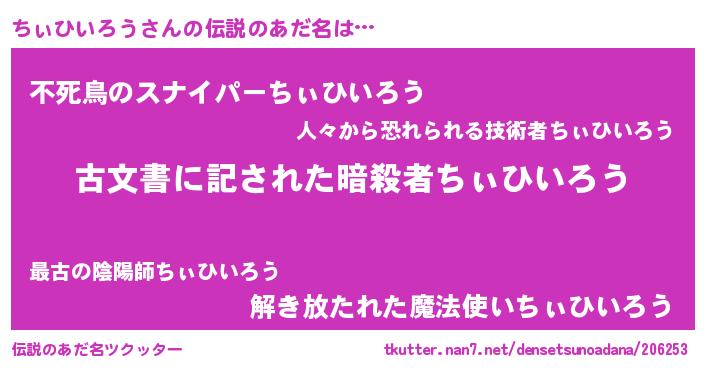 | 意味不明あだ名 | 『永久保存ちぃひいろう』 |