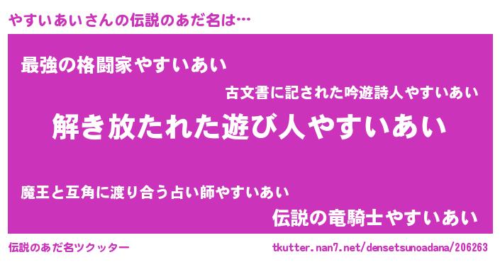 | ポケモン風あだ名 | 『ヤスキング』『ヒヤスイアイ』 |