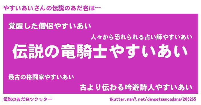 | ファンタジー風あだ名 | 『ヤスフェル』『ヴァルヤスーナ』 |