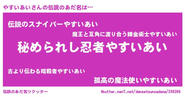 | 意味不明あだ名 | 『やすいあいフォーエバー』 |
