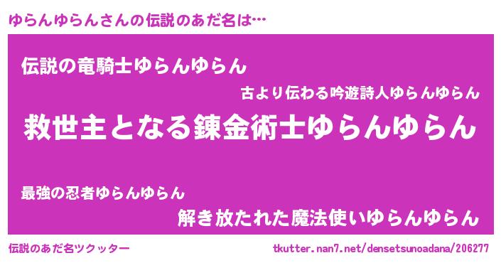 ポケモン風あだ名 | 『ユックウザ』『ユラチュウ』 |