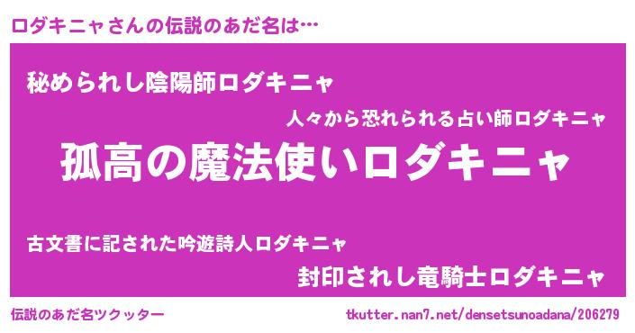 意味不明あだ名 | 『自称ロダキニャ』『ニラ科ロダキニャ属』 |