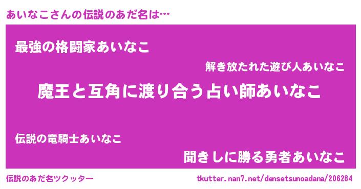 ヘコむあだ名 | 『豆乳』『あいなこ(小並感)』 |