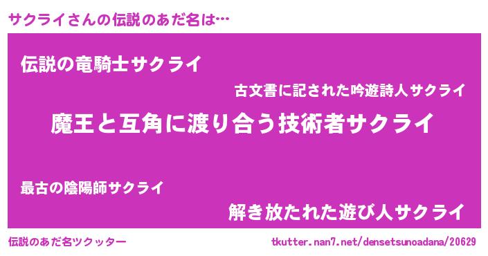 | ヒーロー風カッコイイあだ名 | 『愛の使者サクライ』『スーパーサクライ』 |