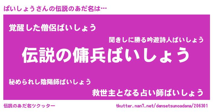 | ヒーロー風カッコイイあだ名 | 『スーパーバイショウ』『幻影騎士バイ』 |