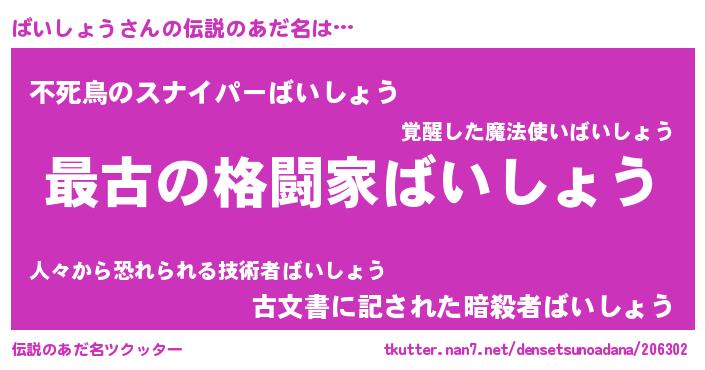 | 意味不明あだ名 | 『ばいしょうフォーエバー』 |