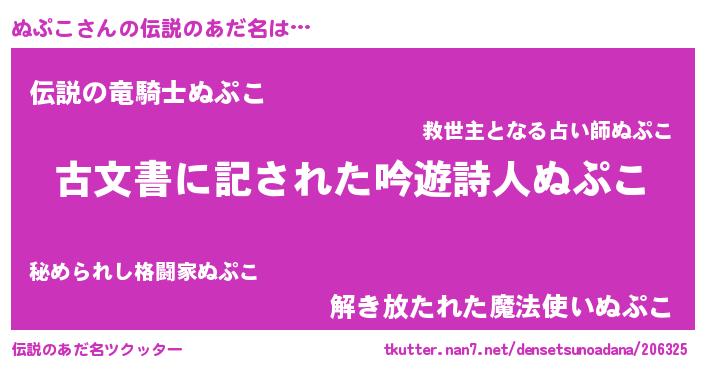 意味不明あだ名 | 『永久保存ぬぷこ』『ペロリンぬぷこ』 |