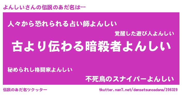 胡散臭い通販商品みたいなあだ名 | 『来世でも幸せになれる健康食品…その名も「よんしい」』 |