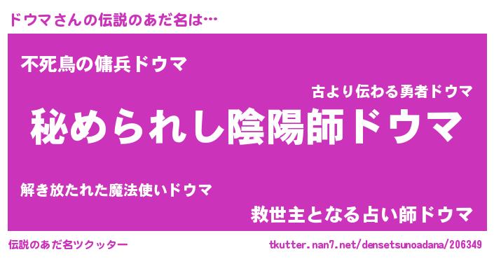 | 男性向けラノベタイトル風あだ名 | 『やはりドウマの青春ラブコメはまちがっている 』 |