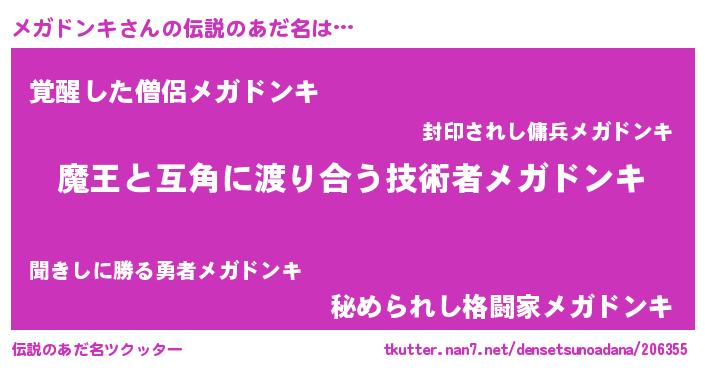 男性向けラノベタイトル風あだ名 | 『おまえをオタクにしてやるから、俺をメガドンキにしてくれ! 』 |