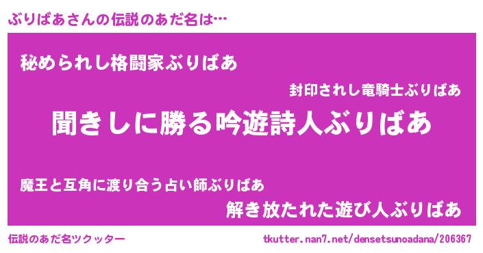 男性向けラノベタイトル風あだ名 | 『ぶりばあという概念が存在しない退屈な世界 』 |