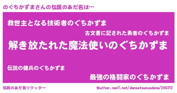 男性向けラノベタイトル風あだ名 | 『のぐちかずまの嫁は女の子じゃないと思った?』 |