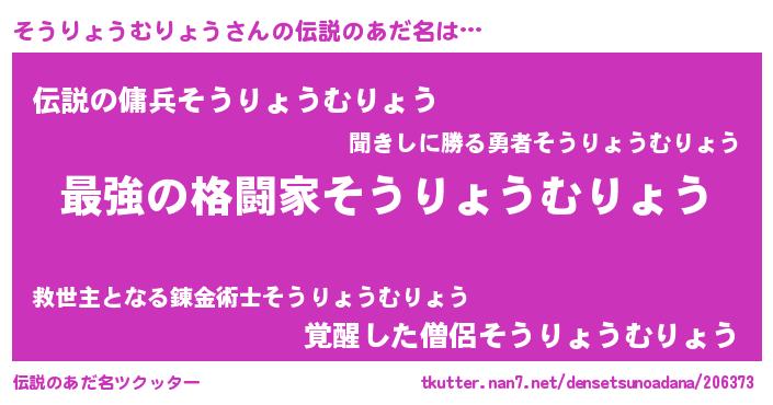 ファンタジー風あだ名 | 『エターナルソウリョウムリョウー』 |