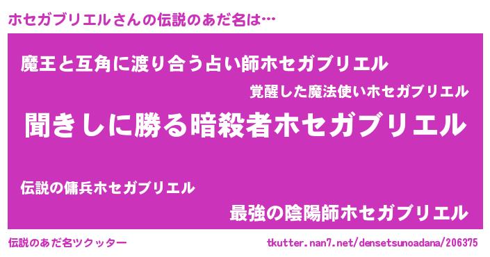 男性向けラノベタイトル風あだ名 | 『ホセガブリエルスレイヤー』 |