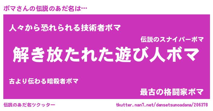 男性向けラノベタイトル風あだ名 | 『ボマの嫁は女の子じゃないと思った?』 |