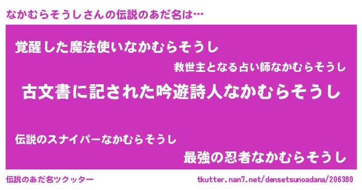 ヘコむあだ名 | 『なかむらそうし(小並感)』『なかお』 |