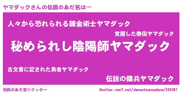 男性向けラノベタイトル風あだ名 | 『ヤマダックスレイヤー』 |