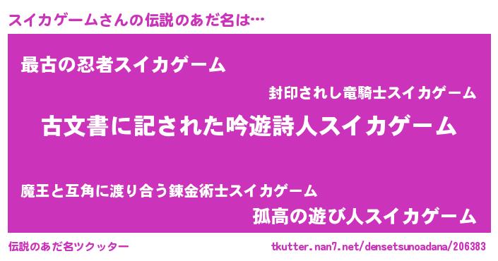 男性向けラノベタイトル風あだ名 | 『この素晴らしい世界にスイカゲームを!』 |