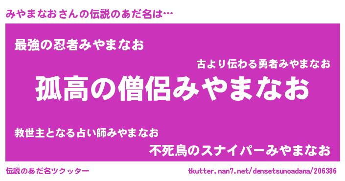 ファンタジー風あだ名 | 『ファントムミヤス』『ユリミヤヴァット』 |